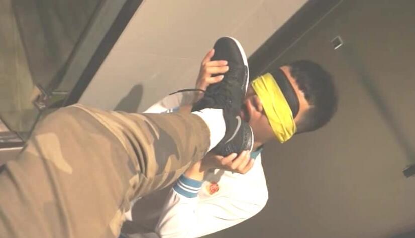 两健壮痞子狠主调教贱狗跪舔脏鞋吃棉袜臭脚